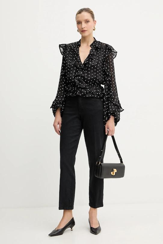 Джинсы из коллекции Silvian Heach свободного кроя с высокой талией. Изготовлены из гладкого денима, эластичного и облегающего по фигуре. - Джинсы, слегка облегающие на бедрах. - Прямая нога полной длины. - Модель с высокой талией, застежкой на пуговицы и молнию. - Три накладных кармана спереди. - Два накладных кармана на ягодицах. - Ширина талии: 33,5 см. - Ширина бедер: 43 см. - Высота талии: 27 см. - Ширина штанины внизу: 20 см. - Ширина штанины: 27,5 см. - Длина внешней части штанины: 96,5 см. - Размеры указаны для размера: 27.