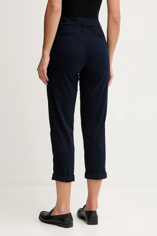 Брюки из коллекции United Colors of Benetton из тонкой, эластичной ткани. Модель выполнена из исключительно комфортного, дышащего материала с высоким содержанием хлопка. - Брюки свободные в области бедер и ягодиц. - Эластичный пояс предотвращает скольжение во время движения. - Модель с высокой талией, застежкой на пуговицы и молнию. - Крой с зауженными брючинами, не стесняющими движений. - Модель с ножками длиной 7/8. - Два боковых накладных кармана. - Два накладных кармана на ягодицах. - Ширина талии: 34 см. - Ширина бедер: 47 см. - Высота талии: 27 см. - Ширина штанины внизу: 18 см. - Ширина штанины: 25 см. - Длина внешней части штанины: 92 см. - Размеры указаны для размера: 34.
