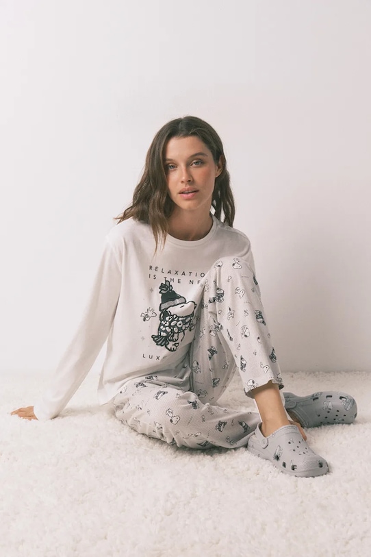 Пижамный комплект с длинным рукавом и брюками из коллекции Women'secret. Изготовлен из приятного трикотажа. Изготовлен из исключительно комфортного хлопкового материала. – Инициатива «Лучший хлопок». Изделия с этой маркировкой содержат не менее 50% хлопка от розничного продавца или бренда, участвующего в инициативе «Лучший хлопок» и инвестирующего в развитие BCI. - Простой дизайн, не стесняющий движений. - Классический круглый вырез. - Модель с принтом. - Эластичный пояс и дополнительная регулировка ширины с помощью шнурков для предотвращения сползания во время движения.