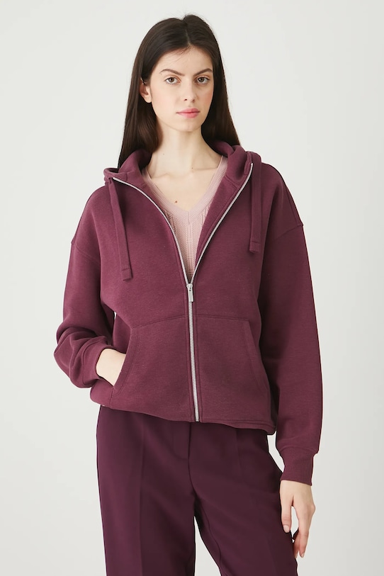 Толстовка с капюшоном из коллекции Medicine. Модель на молнии выполнена из гладкого трикотажа. - Большой размер. - Длинный рукав. - Заниженная линия плеча. - Капюшон с завязками. - Застежка-молния. - Два боковых накладных кармана. - Отделка ребер. - Гладкая трикотажная ткань. - Длина рукава (от капюшона): 73 см. - Длина: 66 см. - Ширина груди: 57 см. - Размеры указаны для размера: S.
