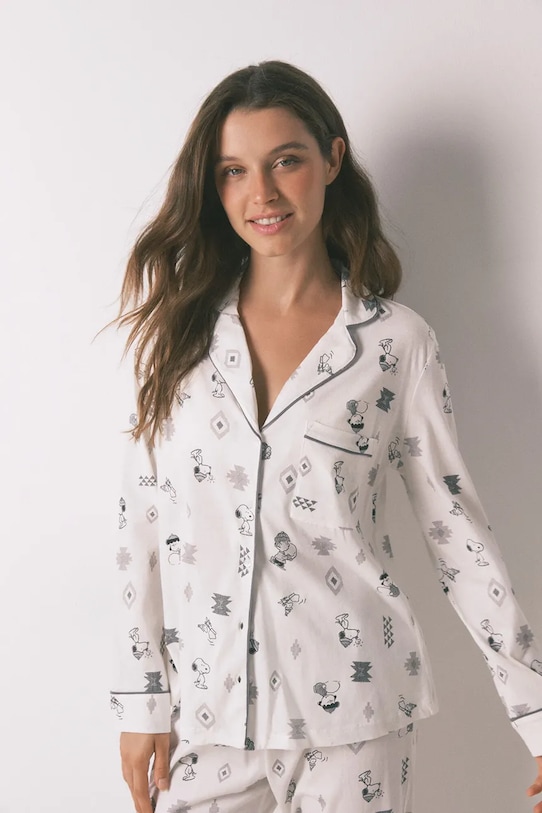 Этот пижамный комплект - рубашка и брюки - из коллекции Women's Secret выполнен из узорчатой ткани и изготовлен из исключительно комфортного хлопка. – Инициатива «Лучший хлопок». Изделия с этой маркировкой содержат не менее 50% хлопка от розничного продавца или бренда, участвующего в инициативе «Лучший хлопок» и инвестирующего в развитие BCI. - Простой дизайн, не стесняющий движений. - Удобная застежка на кнопки позволяет легко надевать и снимать. - Острый вырез с воротником. - Эластичный пояс и дополнительная регулировка ширины с помощью шнурков для предотвращения сползания во время движения.