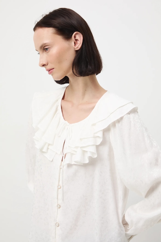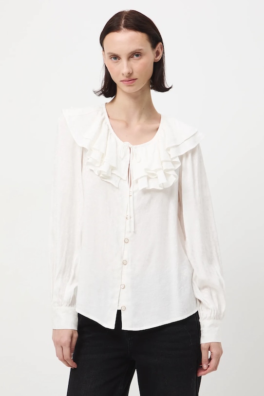 Эта блузка из коллекции Medicine выполнена из узорчатой ткани и имеет круглый вырез с завязкой. - Обычная посадка. - Длинный рукав. - Манжеты на пуговицах. - Круглый вырез горловины с декоративной шнуровкой. - Декоративная оборка на вырезе. - Застежка на пуговицы. - Узорчатая ткань. - Узор с растительным мотивом. - Жаккардовая ткань. - Длина рукава: 66,5 см. - Длина: 63 см. - Ширина груди: 49,5 см. - Размеры указаны для размера: S.