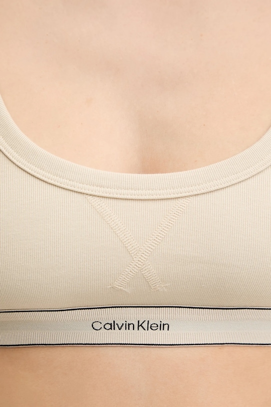 Спортивный бюстгальтер из коллекции Calvin Klein Underwear. Изготовлен из гладкого трикотажного полотна. - Мягкая чашка без косточек и других жестких элементов обеспечивает полный комфорт использования. - Нерегулируемые, несъемные лямки. - Модель отделана эластичной лентой. - Дополнительный слой материала в виде подкладки спереди увеличивает защиту и обеспечивает дополнительный комфорт во время занятий спортом.