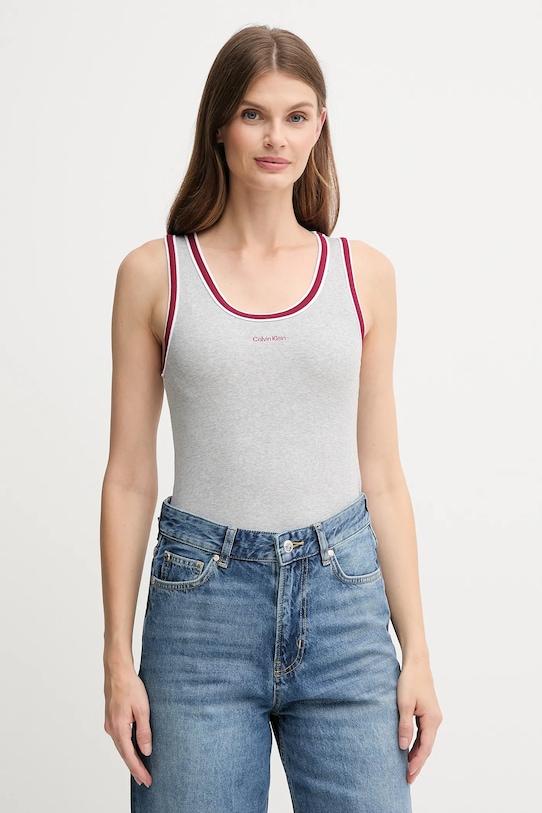 Этот топ из коллекции Calvin Klein Jeans выполнен из тонкой эластичной ткани. Модель выполнена из исключительно комфортного материала с высоким содержанием хлопка. - Приталенный крой, подчеркивающий силуэт. - Модель выполнена из трикотажного полотна в рубчик. - Классический круглый вырез. - Нерегулируемые, несъемные лямки. - Длина: 55 см. - Ширина под мышками: 33 см. - Размеры указаны для размера: S.