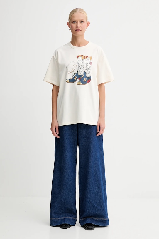 - Свободный крой. - Классический круглый вырез. - Короткий рукав. - Длина: 66 см. - Ширина под мышками: 50 см. - Размеры указаны для размера: S.