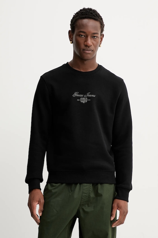 Эта толстовка из коллекции Guess Jeans. Она изготовлена из эластичного трикотажа, невероятно комфортна и отличается высоким содержанием хлопка. - Простой дизайн, не стесняющий движений. - Круглый ребристый вырез. - Вышитый логотип. - Мягкая внутренняя отделка обеспечивает высокий комфорт использования и оптимальный тепловой комфорт. - Длина рукава: 67 см. - Длина: 65 см. - Ширина под мышками: 59 см. - Размеры указаны для размера: M.