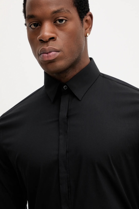 Эта рубашка Calvin Klein выполнена из тонкой эластичной ткани. Материал не мнется. - Очень облегающий крой. - Классический жесткий воротник «Кент». - Длинный рукав. - Усиленные манжеты с двумя пуговицами позволяют индивидуально подогнать посадку. - Застежка на пуговицы позволяет легко надевать и снимать. - Окружность воротника: 41 см. - Длина рукава: 68 см. - Длина: 78 см. - Ширина под мышками: 54 см. - Ширина плеч: 46 см. - Размеры указаны для размера: 41.
