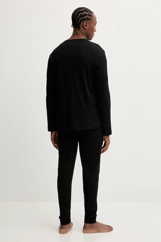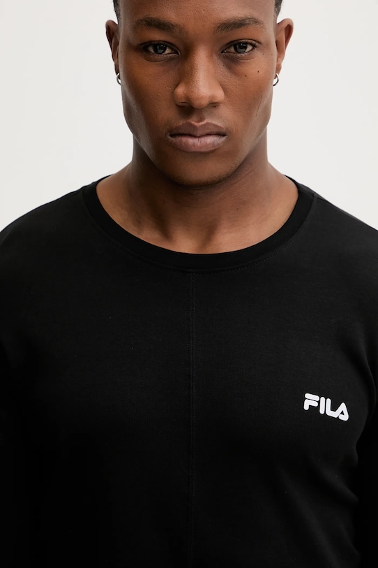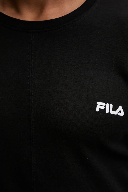 Пижама из коллекции Fila. Изготовлена из тонкой эластичной ткани. В комплект входят топ с длинными рукавами и штаны. - Классический круглый вырез. - Эластичный пояс. - Ножки отделаны манжетами. - Крой с зауженными брючинами, не стесняющими движений. - Простой дизайн, не стесняющий движений. - Длина рукава: 65 см, - Длина: 71 см. - Ширина под мышками: 50 см. - Ширина талии: 36 см. - Высота талии: 32 см. - Длина штанины: 106 см. - Размеры указаны для размера: M.