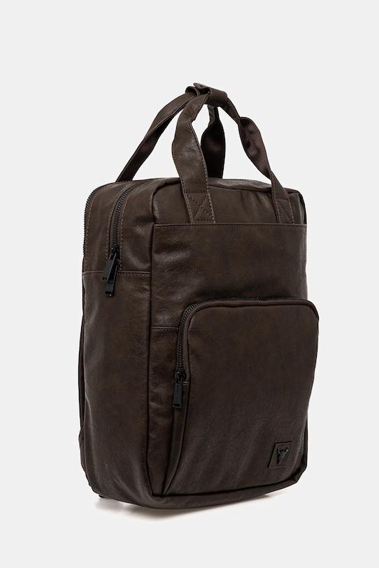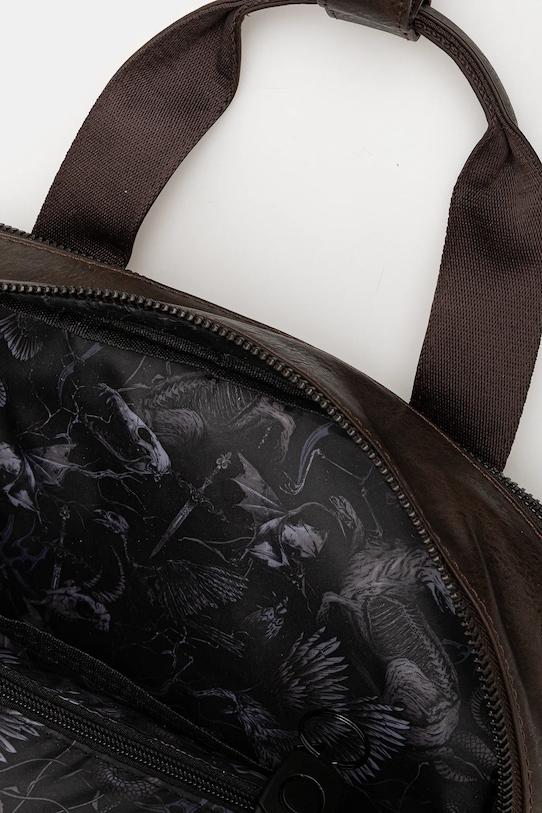 Рюкзак из коллекции «Medicine». Изготовлен из экокожи. - Два отделения на молнии. - Карман на молнии спереди. - Передний карман с магнитной застежкой. - Внутренний карман на молнии. - Внутренние накладные карманы. - Встроенный брелок, например, для ключей. - Две короткие ручки, застегивающиеся на кнопку. - Декоративная деталь спереди. - Задняя панель с мягкими сетчатыми элементами. - Регулируемая длина ремня. - Модель на подкладке. - Узорчатая подкладка. - Вмещает формат А4. - Глубина: 13 см. - Высота: 40 см. - Ширина у основания: 30 см.