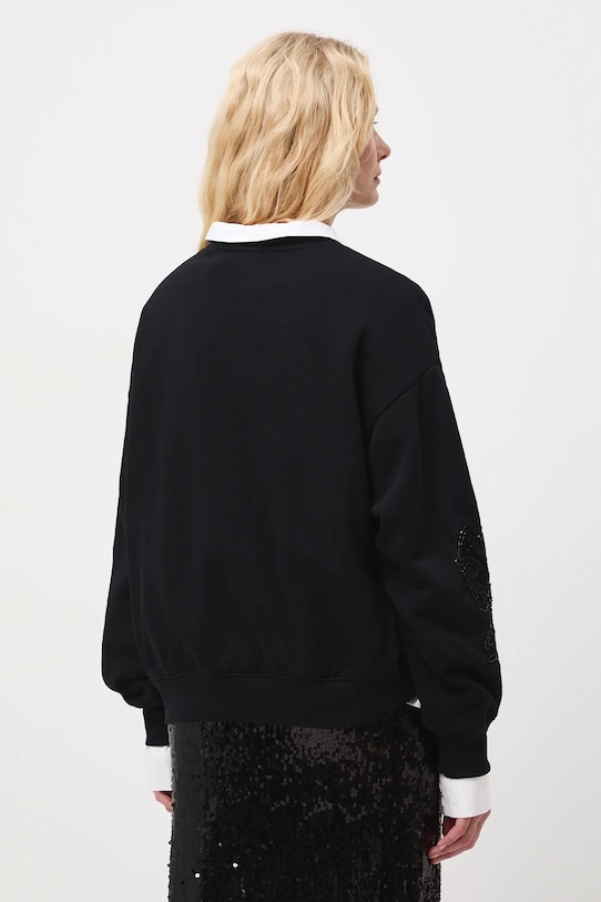 Толстовка из коллекции «Medicine». Изготовлена из трикотажного полотна с аппликацией. - Непринужденный стиль. - Длинный рукав. - Заниженная линия плеча. - Круглый ребристый вырез. - Отделка ребер. - Модель с декоративной вышивкой. - Декоративная аппликация из бисера. - Длина рукава (от горловины): 76 см. - Длина: 62 см. - Ширина груди: 59 см. - Размеры указаны для размера: S.