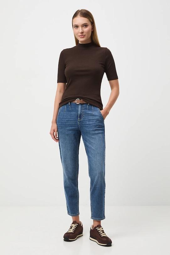 Эти джинсы-морковки с высокой талией из коллекции Medicine изготовлены из стираного денима. - Фасон «морковка» (Carrot Cut) - джинсы, более свободные в бёдрах, со слегка сужающимися к низу штанинами. Этот фасон подчёркивает линию талии, визуально её укорачивая и уравновешивая пропорции фигуры. Они идеально подходят для создания более формального образа, сохраняя при этом непринуждённость денима. - Модель с высокой талией, застежкой на пуговицы и молнию. - Ремешок из эко-кожи в комплекте. - Накладные карманы. - Декоративно выстиранный деним. - Декоративная строчка. - Ширина талии: 35,5 см. - Ширина бедер: 46 см. - Высота талии: 27,5 см. - Ширина штанины внизу: 14,5 см. - Длина по внутреннему шву: 70 см. - Размеры указаны для размера: 36.