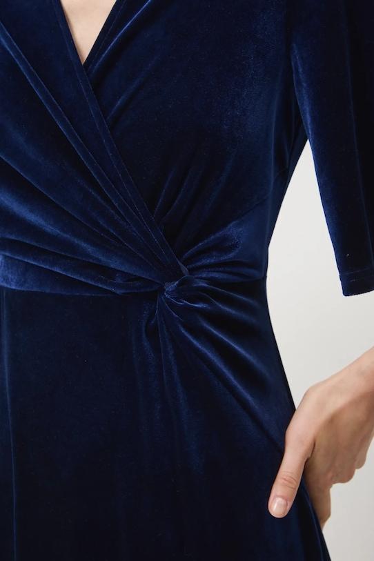 Платье из коллекции «Medicine». Расклешенная модель из бархатного трикотажа. - Расклешенный крой. - Короткие, широкие рукава. - Острый вырез-конверт. - Декоративные оборки. - Декоративный переплет. - Модель выполнена из велюрового материала. - Модель длины миди. - Ширина груди: 42 см. - Ширина талии: 34 см. - Длина: 132 см. - Размеры указаны для размера: S.