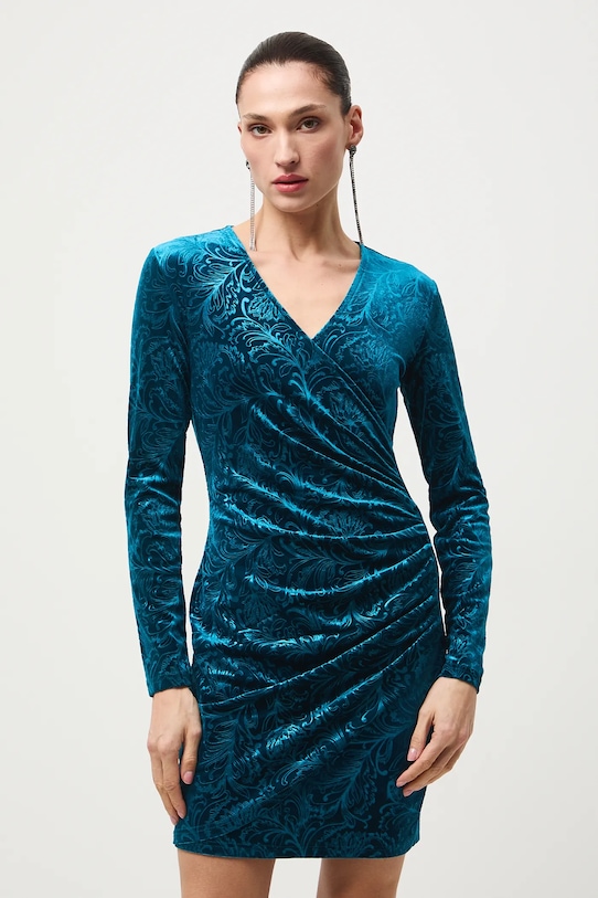 Платье из коллекции «Medicine». Приталенная модель из узорчатой ткани. - Приталенный крой с привлекательными оборками. - Модель с откидной передней частью. - Острый вырез. - Длинные рукава. - Узорчатый материал. - Расположение узора может отличаться на каждом изделии. - Модель выполнена из велюрового материала. - Длина рукава: 61 см. - Ширина груди: 39 см. - Ширина талии: 34 см. - Длина: 88,5 см. - Размеры указаны для размера: S.