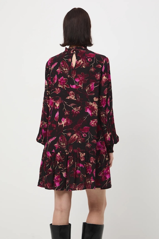Платье из коллекции «Medicine». Расклешенный фасон из узорчатой ткани. - Расклешенный крой. - Длинные рукава. - Рукава отделаны ребристыми манжетами. - Модель с воротником-стойкой. - Застегивается на пуговицы сзади. - Модель с декоративной оборкой. - Узорчатая ткань. - Узор с растительным мотивом. - Расположение узора может отличаться на каждом изделии. - Модель мини-длины. - Длина рукава: 62,5 см. - Ширина груди: 50 см. - Длина: 92 см. - Размеры указаны для размера: S.