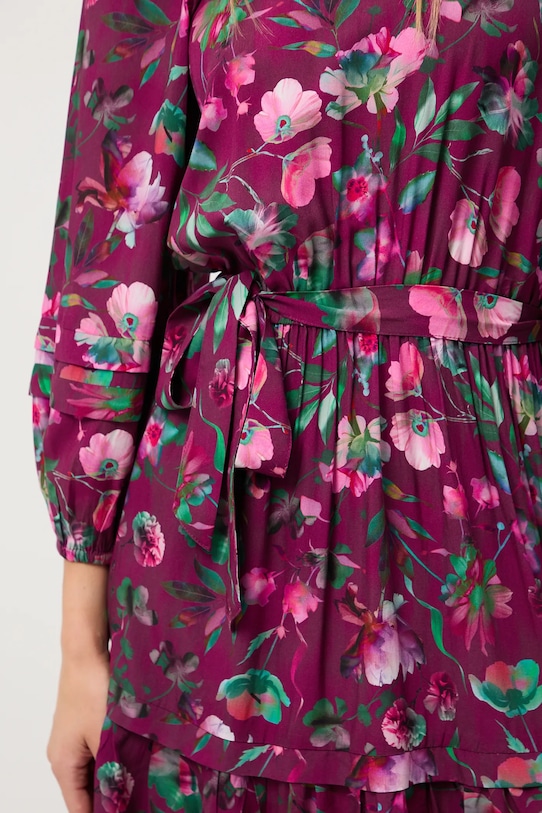 Платье из коллекции «Medicine». Расклешенный фасон из узорчатой ткани. - Расклешенный крой. - Рукав реглан. - Рукав три четверти. - Рукава отделаны резинкой. - Круглый вырез. - Эластичный пояс. - Текстильный ремешок в комплекте. - Застегивается на пуговицы сзади. - Модель с декоративными оборками. - Узорчатая ткань. - Модель мини-длины. - Узор с растительным мотивом. - Ширина талии (до растягивания): 32 см. - Ширина талии (после растяжения): 54 см. - Ширина груди: 48 см. - Длина: 91,5 см. - Размеры указаны для размера: S.