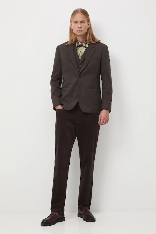 - Однобортный пиджак с застежкой на пуговицы.