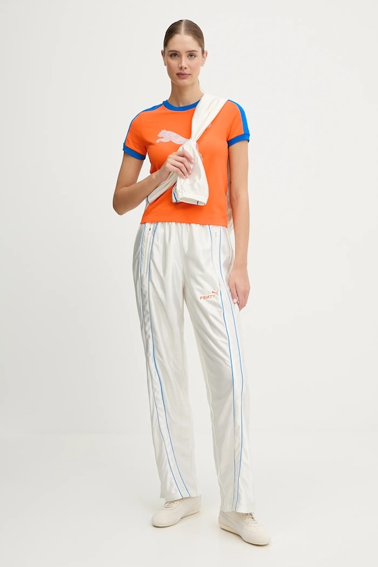Эта футболка Puma изготовлена из тонкой, эластичной ткани с высоким содержанием хлопка. - В этом изделии используется не менее 20% переработанного хлопка вместо натурального. Это снижает потребление воды и энергии, а также образование отходов. - Приталенный крой, подчеркивающий силуэт. - Круглый ребристый вырез. - Короткие рукава с удобными эластичными манжетами. - Модель с декоративной аппликацией из стразов.