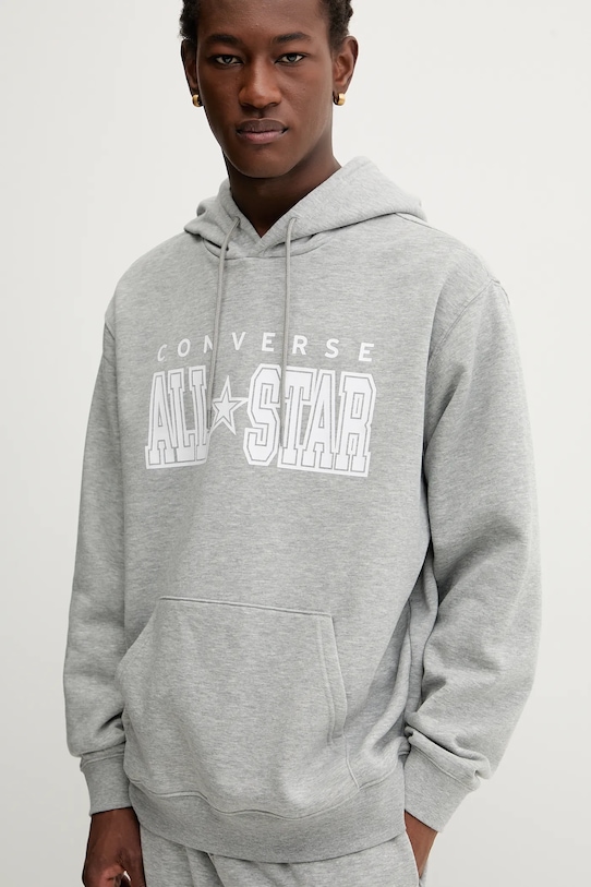 Эта толстовка Converse с капюшоном выполнена из меланжевого трикотажа. Мягкая подкладка обеспечивает максимальный комфорт. - Стандартная посадка. - Крой рукава со спущенной линией плеча не ограничивает подвижность. - Мягкая внутренняя отделка повышает комфорт использования. - Модель с капюшоном. - Капюшон с завязками обеспечивает дополнительное тепло и защиту при необходимости. - Практичный вставной карман-кенгуру спереди. - Модель с принтом на груди. - Длина рукава (от капюшона): 79 см. - Длина: 73 см. - Ширина под мышками: 66 см. - Размеры указаны для размера: L.
