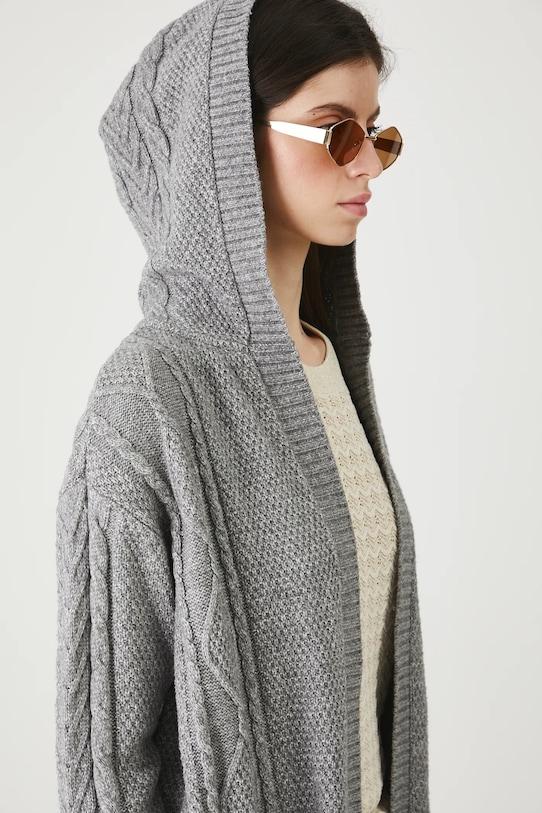 Кардиган из коллекции Medicine. Изготовлен из фактурной меланжевой пряжи. - Большой размер. - Длинный рукав. - Заниженная линия плеча. - Модель с капюшоном. - Накладные карманы. - Отделка ребер. - Плетение кос. - Плотная меланжевая трикотажная ткань. - Длина рукава (от капюшона): 69,5 см. - Длина: 89,5 см. - Ширина груди: 60 см. - Размеры указаны для размера: S.