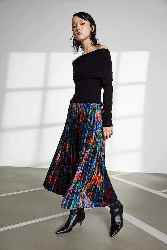 Юбка из специальной коллекции «Таинственный мир медицины». Расклешенный фасон из плиссированной ткани.