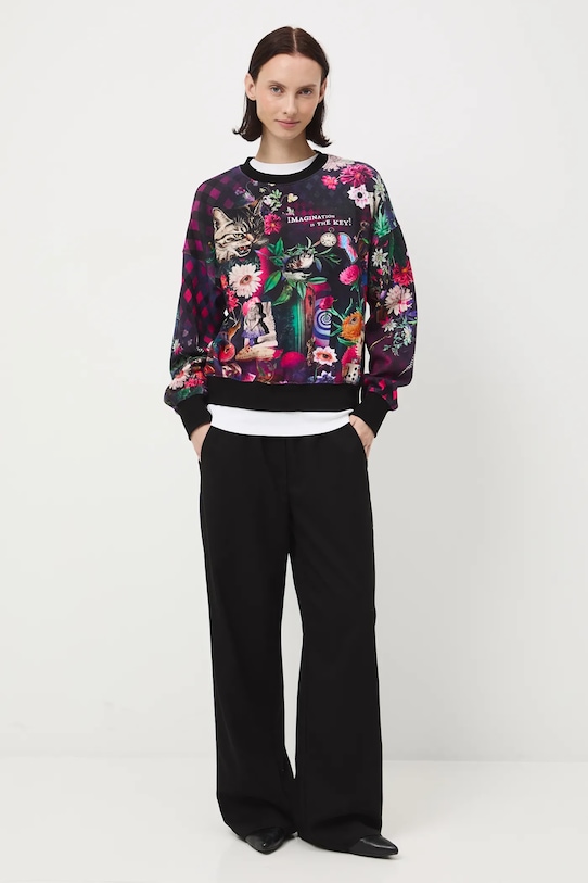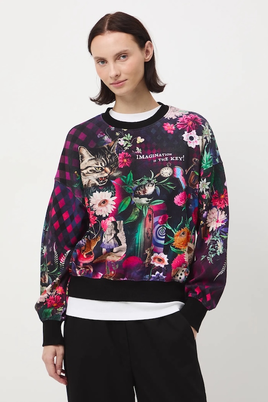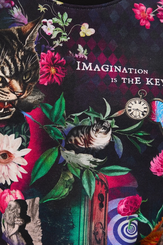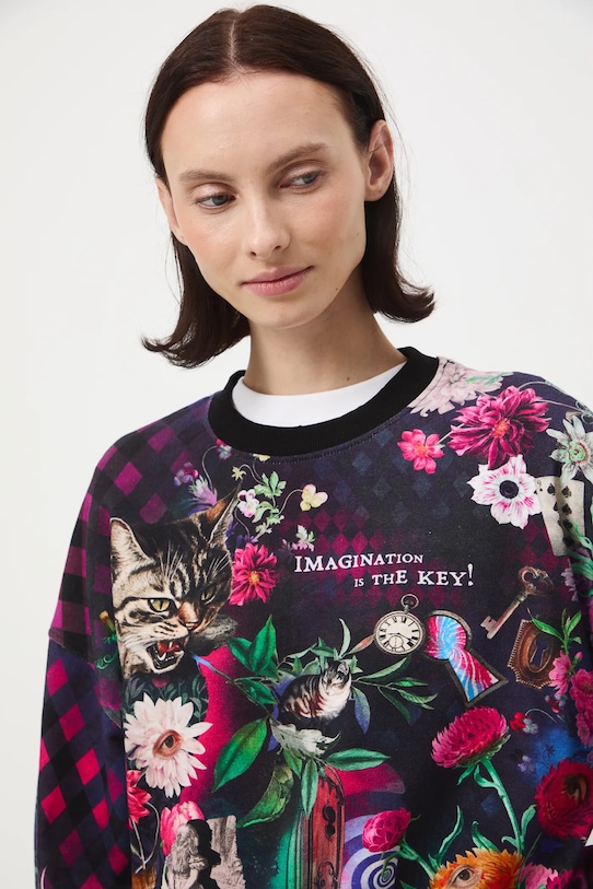 Толстовка из коллекции «Medicine». Изготовлена из хлопкового трикотажа. - Непринужденный стиль. - Длинный рукав. - Заниженная линия плеча. - Круглый ребристый вырез. - Отделка ребер. - Узорчатое трикотажное полотно. - Модель с надписью: Воображение - это ключ!. - Длина рукава (от горловины): 78 см. - Длина: 63 см. - Ширина груди: 58 см. - Размеры указаны для размера: S.
