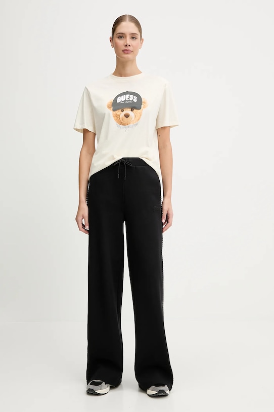 Эта футболка из коллекции Guess выполнена из тонкой, эластичной ткани. Модель выполнена из исключительно комфортного хлопкового материала. - Простой дизайн, не стесняющий движений. - Круглый ребристый вырез. - Модель с принтом и стразами. - Модель с декоративной аппликацией из пайеток. - Длина: 66 см. - Ширина под мышками: 55 см. - Размеры указаны для размера: S.