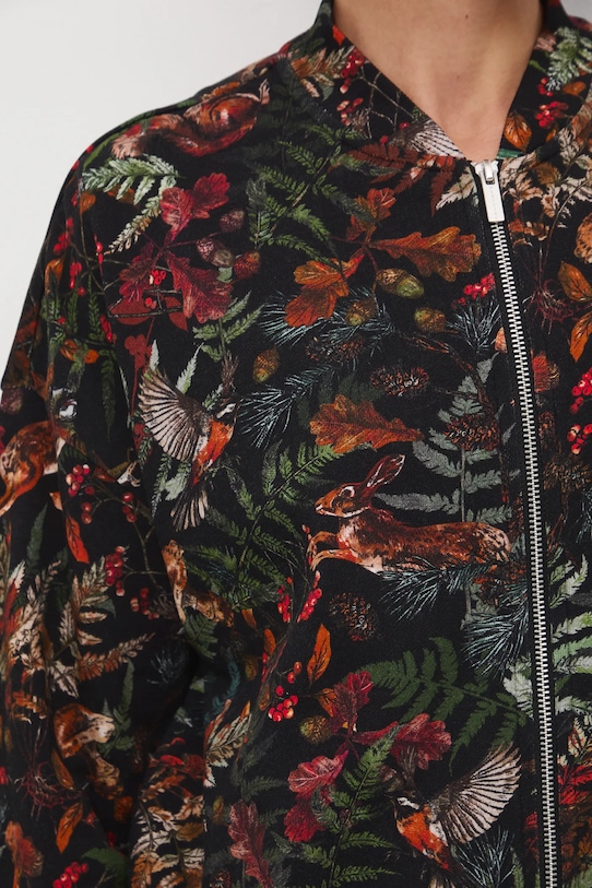 Толстовка из коллекции Medicine. Модель на молнии выполнена из трикотажного полотна с узором. - Непринужденный стиль. - Длинный рукав. - Заниженная линия плеча. - Круглый вырез. - Застежка-молния. - Накладные карманы. - Отделка ребер. - Узорчатое трикотажное полотно. - Узор с растительными и животными мотивами. - Модель выполнена из ткани френч-терри. - Длина рукава (от горловины): 77,5 см. - Длина: 62,5 см. - Ширина груди: 58,5 см. - Размеры указаны для размера: S.
