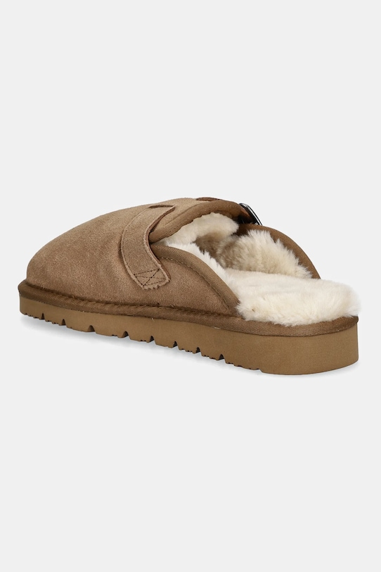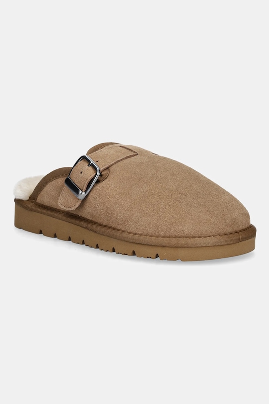 Тапочки из коллекции Answear.LAB, изготовленные из замши. Мягкая текстильная подкладка обеспечивает исключительный комфорт. - Круглый, мягкий нос. - Подошва из пеноматериала обеспечивает более мягкое ощущение и дополнительную амортизацию. - Текстильная внутренняя часть комфортна для ног и облегчает содержание обуви в чистоте. - Мягкая внутренняя отделка обеспечивает высокий комфорт использования и оптимальный тепловой комфорт. - Застежка-пряжка со штифтом для индивидуальной подгонки. - Длина вставки: 23 см. - Размеры указаны для размера: 37.