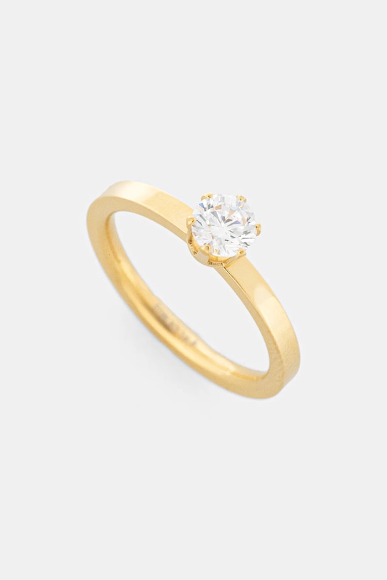Кольцо из коллекции EDBLAD. Эта модель, украшенная кубическим цирконием, изготовлена ​​из нержавеющей стали с покрытием из 14-каратного золота.