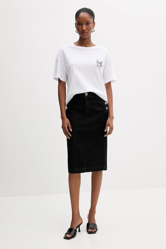 Футболка из коллекции Liu Jo, выполненная из тонкой, эластичной ткани. Эта модель выполнена из исключительно комфортного хлопкового материала. - Liu Jo Better - это линейка продукции, изготовленной из этичных материалов в результате устойчивого производственного процесса, что снижает негативное воздействие производства на окружающую среду. - Непринужденный стиль. - Классический круглый вырез. - Модель с декоративной аппликацией. - Длина: 63 см. - Ширина под мышками: 50 см. - Размеры указаны для размера: S.