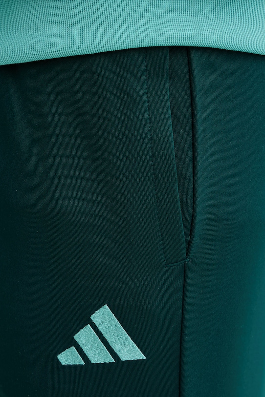 Этот спортивный костюм Adidas выполнен из тонкого, слегка эластичного трикотажа. Полиэстер обеспечивает лучшую устойчивость к сминанию. - Простой дизайн, не стесняющий движений. - Поднятый воротник обеспечивает дополнительную защиту от холода. - Застежка-молния обеспечивает легкую и эффективную вентиляцию. - Рукава и низ изделия отделаны удобными эластичными манжетами. - Эластичный пояс и дополнительная внутренняя регулировка ширины с помощью шнурков для предотвращения сползания во время движения. - Два боковых накладных кармана.