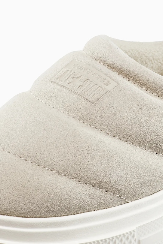 Тапочки Converse из замши. Прочные и износостойкие резиновые подошвы. – Лёгкая, специально разработанная стелька Ortholite отличается исключительной мягкостью и гибкостью, адаптируется к форме стопы, дольше сохраняя свою первоначальную толщину и обеспечивая отличную амортизацию. Пенный материал, из которого она изготовлена, обеспечивает оптимальную воздухопроницаемость и обладает высокими антибактериальными свойствами, предотвращая рост бактерий, грибков и появление неприятных запахов. - Мягкая флисовая подкладка приятна на ощупь и повышает изоляцию от холода. - Круглый, слегка утолщенный носок. - Платформенная модель.