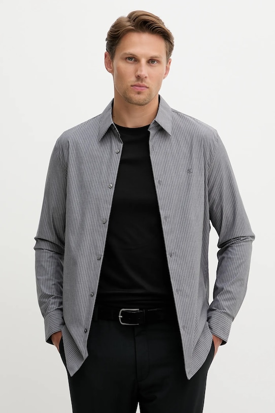 Эта рубашка Calvin Klein выполнена из тонкой, слегка эластичной ткани. Модель выполнена из дышащего материала с высоким содержанием хлопка. - Приталенный фасон. - Застежка на пуговицы. - Мягкий классический воротник «Кент». - Манжеты на пуговицах. - Полосатый рисунок. - Длина рукава: 63,5 см. - Длина: 75 см. - Ширина под мышками: 52 см. - Ширина плеч: 41 см. - Окружность воротника: 44,5 см. - Размеры указаны для размера: M.