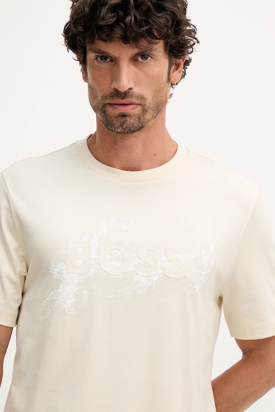 Эта футболка BOSS выполнена из тонкой эластичной ткани. Эта модель выполнена из исключительно комфортного хлопкового материала. - Изделия линейки BETTER BOSS не менее чем на 60% изготовлены из материалов, полученных более экологичным способом. - Непринужденный стиль. - Круглый ребристый вырез. - Модель с печатью и аппликацией. - Длина: 74 см. - Ширина под мышками: 54 см. - Размеры указаны для размера: M.