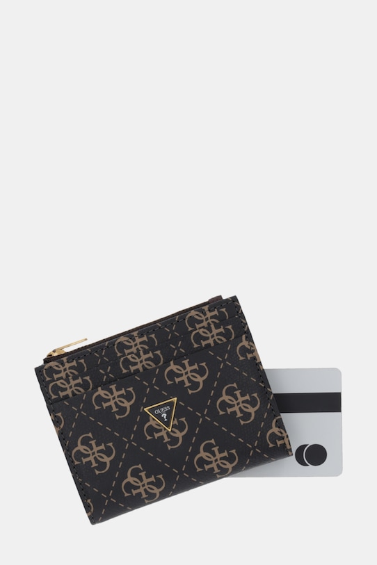 Кошелек среднего размера из коллекции Guess. Изготовлен из натуральной кожи. RFID Protect – защита от кражи электронных данных. Эта модель оснащена специальным покрытием из никеля, меди и никеля, которое защищает данные RFID от несанкционированного считывания (RFID = Radio Frequency Identification). Такие данные хранятся, например, на кредитных картах, новых удостоверениях личности, паспортах и мобильных устройствах – телефонах, смартфонах, планшетах и т. д. - Застежка-кнопка. - Карман для монет на молнии. - Отделение для купюр. - Количество слотов для карт: 6. - Размеры: 8,5 х 10,5 см.