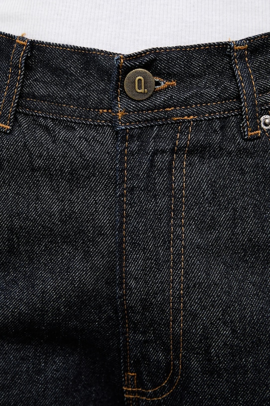 Джинсы из коллекции Answear.Lab свободного кроя с высокой талией. Изготовлены из плотного денима. - Модель с высокой талией, застежкой на пуговицы и молнию. - Три накладных кармана спереди. - Два накладных кармана на ягодицах. - Фасон Wide Leg – джинсы слегка облегающие в бёдрах, с характерным широким кроем, плавно расширяющимся от талии к низу. Крой подчёркивает линию талии, а свободный подол не стесняет движений. - Ширина талии: 35 см. - Ширина бедер: 45 см. - Высота талии: 31 см. - Ширина штанины: 34 см. - Ширина штанины внизу: 30 см. - Длина по внутреннему шву: 77 см. - Размеры указаны для размера: S.
