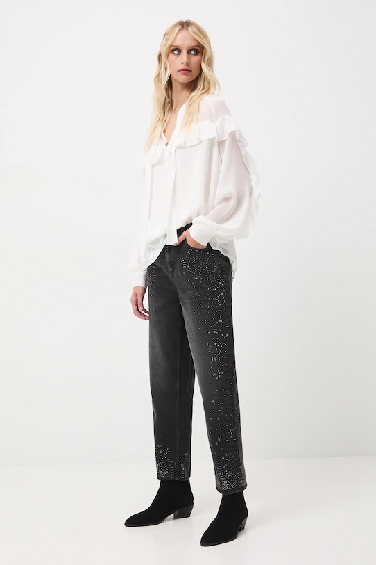 Эти джинсы mom fit с высокой талией из коллекции Medicine выполнены из хлопкового денима. Mom fit – джинсы в винтажном стиле с более свободным кроем, особенно в области бёдер, и слегка зауженными брючинами. Mom fit визуально сужает талию и подчёркивает бедра, сохраняя при этом комфорт. - Модель с высокой талией, застежкой на пуговицы и молнию. - Накладные карманы. - Модель с декоративной аппликацией. - Декоративные стразы и кристаллы. - Укороченная нога. - Ширина талии: 37 см. - Ширина бедер: 50 см. - Высота талии: 28 см. - Ширина штанины внизу: 18 см. - Длина по внутреннему шву: 70 см. - Длина: 36.