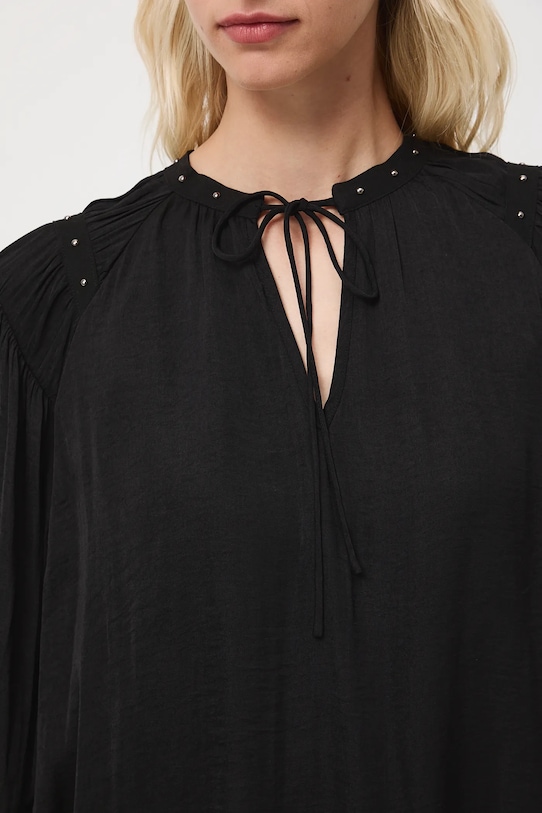 Платье из коллекции «Medicine». Свободного кроя, выполнено из гладкой ткани. - Свободный покрой. - Длинные рукава реглан. - Манжеты на пуговицах. - Декоративная отделка рукавов. - Острый вырез с завязками. - Модель с декоративной оборкой. - Декоративные оборки. - Декоративные детали. - Модель на подкладке. - Гладкая ткань. - Модель мини-длины. - Длина рукава (от горловины): 74 см. - Ширина груди: 55 см. - Длина: 91 см. - Размеры указаны для размера: S.