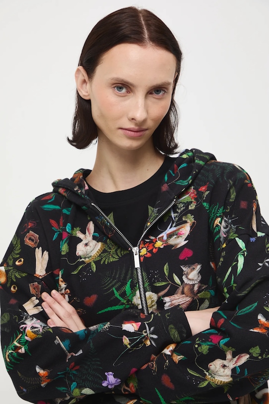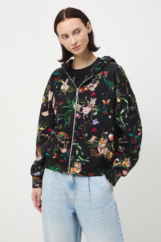 Толстовка с капюшоном из коллекции Medicine. Модель на молнии выполнена из узорчатого трикотажа. - Большой размер. - Длинный рукав. - Заниженная линия плеча. - Модель с капюшоном. - Застежка-молния. - Отделка ребер. - Узорчатое трикотажное полотно. - Узор с растительными и животными мотивами. - Расположение узора может отличаться на каждом изделии. - Длина рукава (от капюшона): 74,9 см. - Длина: 61 см. - Ширина груди: 62,5 см. - Размеры указаны для размера: S.