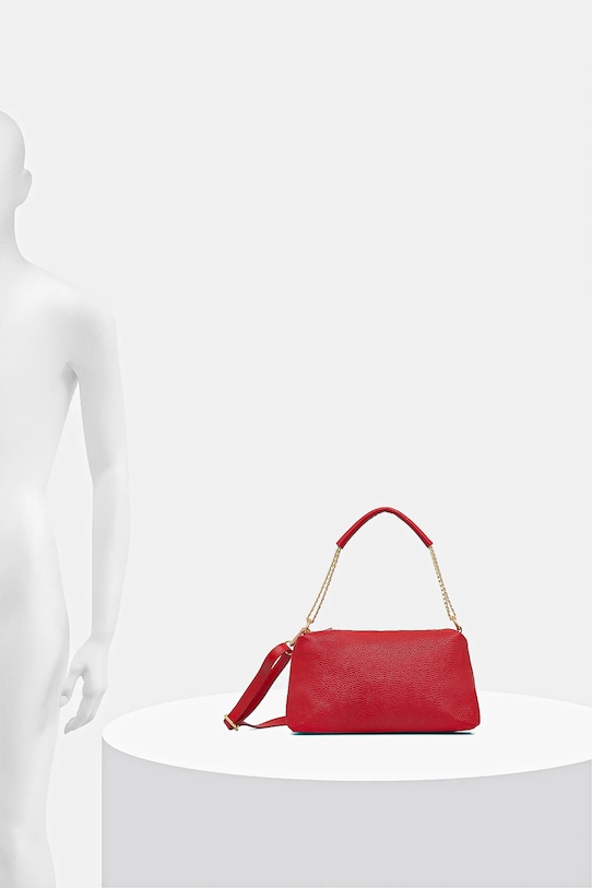 Небольшая сумочка из коллекции Answear.Lab. Модель на молнии из натуральной кожи. - Застежка-молния. - Двухкамерная модель. - Входящий в комплект тканевый чехол защищает изделие от пыли. - Не подходит для формата А4. - Имеет ручку и съемный регулируемый ремень. - Внутренний накладной карман. - Минимальная длина ремешка: 65 см. - Максимальная длина ремня: 121 см. - Длина ручки: 44 см. - Глубина: 9 см. - Высота: 14 см. - Ширина у основания: 26 см.