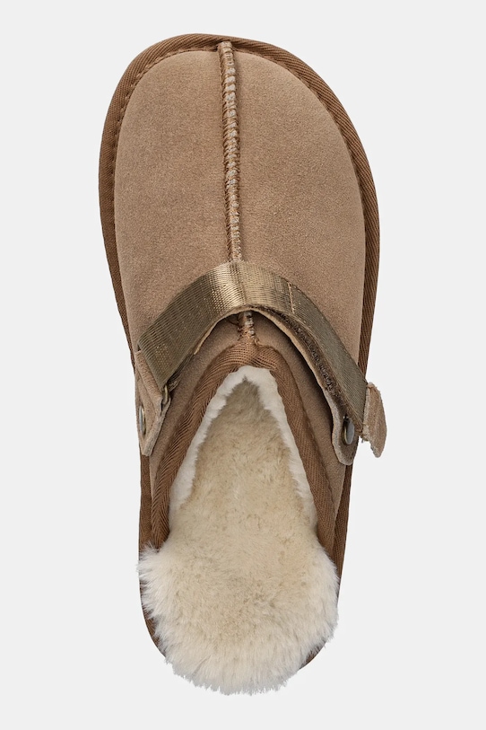 Тапочки из коллекции Answear.LAB, изготовленные из замши. Мягкая подкладка внутри обеспечивает дополнительную мягкость и комфорт. - Круглый, мягкий нос. - Мягкая внутренняя отделка обеспечивает высокий комфорт использования и оптимальный тепловой комфорт. - Подошва из пеноматериала обеспечивает более мягкое ощущение и дополнительную амортизацию. - Длина вставки: 23 см. - Размеры указаны для размера: 37.