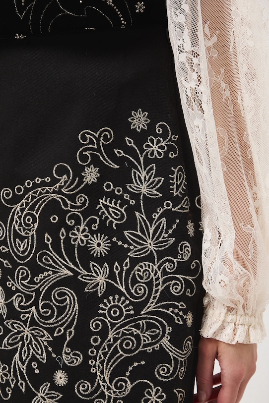 Юбка из коллекции «Medicine». Модель прямого кроя, выполнена из ткани с декоративной вышивкой. - Простой дизайн. - Застежка-молния. - Повышенное состояние. - Модель с декоративной вышивкой. - Узор с растительным мотивом. - Модель на подкладке. - Модель мини-длины. - Ширина талии: 36 см. - Длина спереди: 42 см. - Длина спинки: 43,8 см. - Размеры указаны для размера: S.