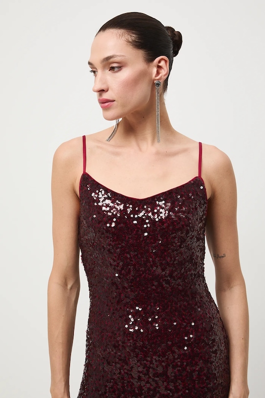 Платье из коллекции «Medicine». Приталенная модель из материала с пайетками. - Приталенный крой. - Модель без бретелек. - Несъемные, регулируемые лямки. - У него есть щель. - Модель выполнена из ткани с пайетками. - Модель на подкладке. - Модель длины миди. - Ширина талии: 36,5 см. - Ширина груди: 42 см. - Длина: 120 см. - Размеры указаны для размера: S.