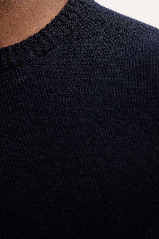 Этот свитер Lindbergh связан из тонкого эластичного трикотажа. Высокие терморегулирующие свойства шерсти помогают согреться в холод и охладиться в жару. - Этот свитер прямого кроя обеспечивает комфорт и универсальный вид. Он мягко облегает фигуру, не перетягивая её. Классический и простой, он прекрасно сочетается как с элегантными, так и с повседневными образами. - Классический круглый вырез. - Рукава и низ изделия отделаны удобными эластичными манжетами. - Длина рукава: 71 см. - Длина: 72 см. - Ширина под мышками: 59 см. - Размеры указаны для размера: M.