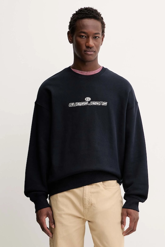 Эта толстовка из коллекции Guess Jeans выполнена из тонкой эластичной ткани. Мягкая подкладка обеспечивает мягкость и дополнительное тепло. - Продукция Guess Eco разработана таким образом, чтобы производить как можно меньше отходов без ущерба для качества и долговечности. - Свободный крой, обеспечивающий полную свободу движений. - Длинный рукав. - Крой рукава со спущенной линией плеча не ограничивает подвижность. - Классический круглый вырез. - Рукава и низ изделия отделаны удобными эластичными манжетами. - Модель с аппликацией. - Длина рукава (от горловины): 85 см. - Длина: 76 см. - Ширина под мышками: 64 см. - Размеры указаны для размера: M.