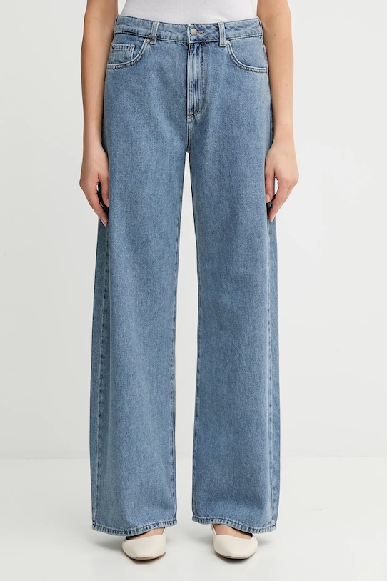 Эти джинсы широкого кроя из коллекции United Colors of Benetton с высокой талией выполнены из жёсткого денима. - Модель с высокой талией, застежкой на пуговицы и молнию. - Три накладных кармана спереди. - Два накладных кармана на ягодицах. - Декоративно выстиранный деним. - Ширина талии: 36 см. - Ширина бедер: 47 см. - Высота талии: 29 см. - Ширина штанины внизу: 26 см. - Ширина штанины: 26 см. - Длина внешнего шва: 110 см. - Размеры указаны для размера: 28.
