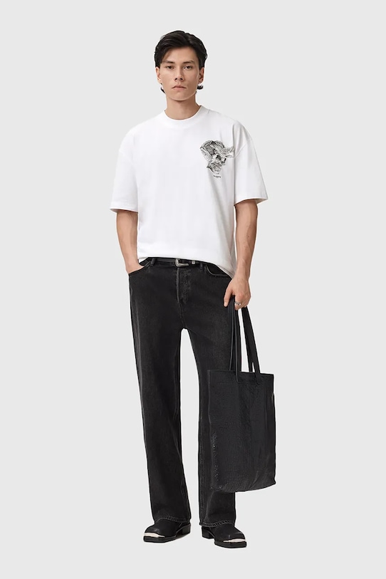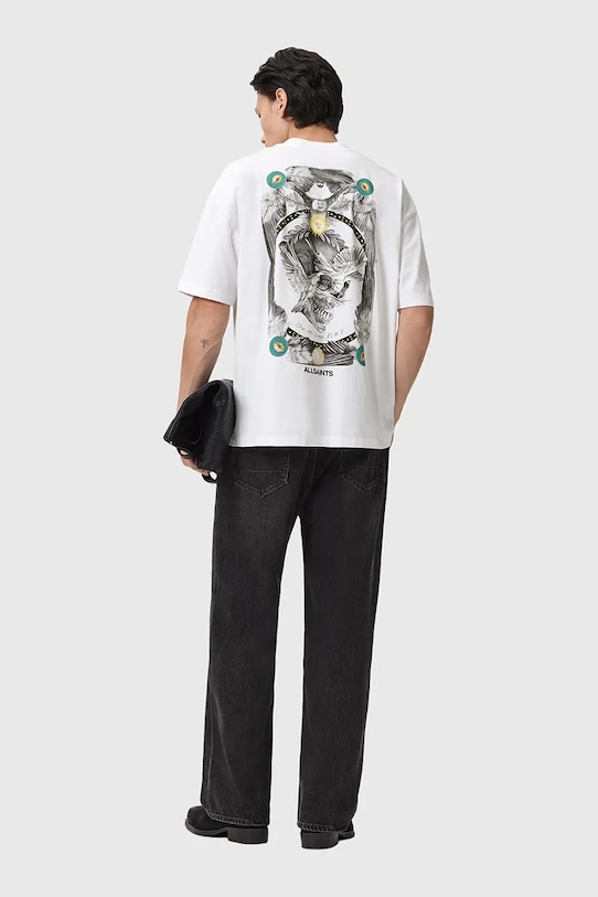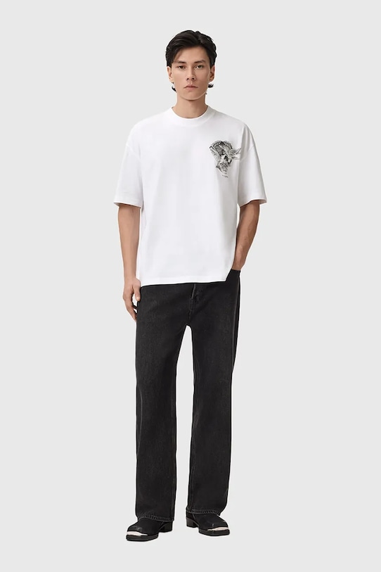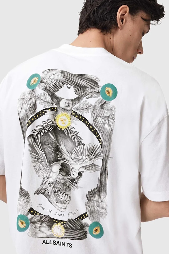 Эта футболка из коллекции AllSaints выполнена из тонкой эластичной ткани на основе дышащего хлопка. - В состав продукта входят волокна органического хлопка, выращенного без использования вредных химикатов, химических пестицидов и искусственных удобрений. - Свободный крой, обеспечивающий полную свободу движений. - Круглый ребристый вырез. - Крой рукава со спущенной линией плеча не ограничивает подвижность. - Модель с принтом на груди и спине.