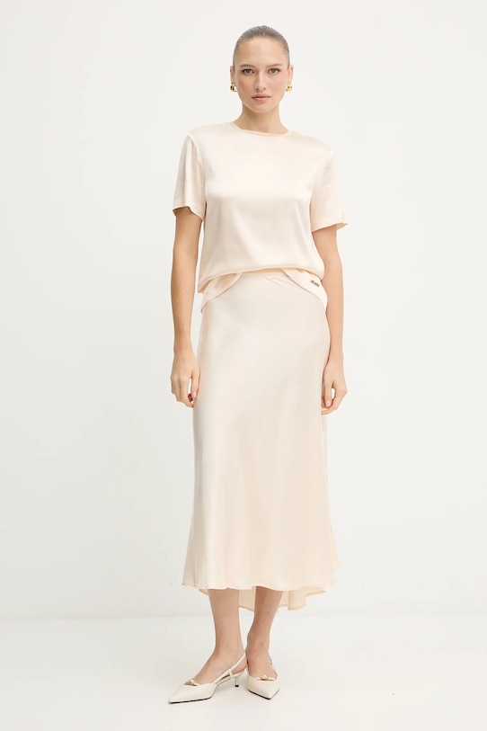 Футболка из коллекции Silvian Heach выполнена из тонкой, слегка эластичной ткани. Модель выполнена из исключительно комфортного материала с высоким содержанием вискозы. - Простой дизайн, не стесняющий движений. - Классический круглый вырез. - Гладкая трикотажная ткань. - Длина: 64 см. - Ширина под мышками: 48 см. - Размеры указаны для размера: 36.