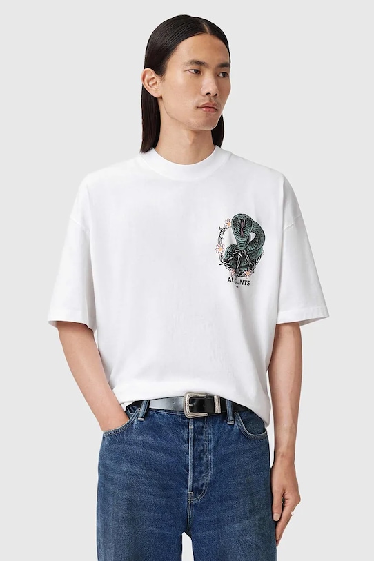 Эта футболка из коллекции AllSaints выполнена из тонкой, эластичной ткани. Эта модель выполнена из исключительно комфортного и дышащего материала, идеально подходящего для теплого времени года. - Органический хлопок выращивается без использования вредных химикатов, химических пестицидов и искусственных удобрений. - Свободный крой, обеспечивающий полную свободу движений. - Короткий рукав. - Крой рукава со спущенной линией плеча не ограничивает подвижность. - Классический круглый вырез. - Модель с принтом на груди и спине.