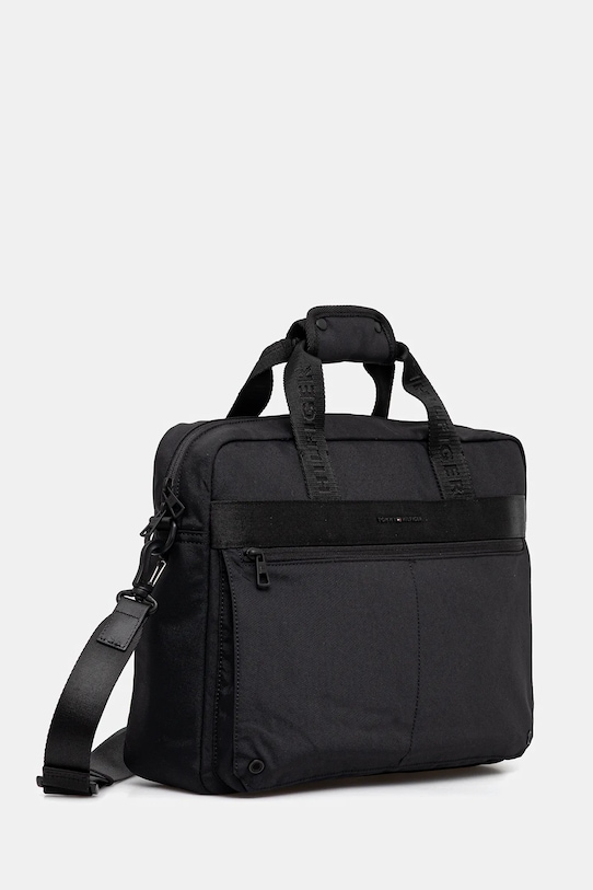 Сумка для ноутбука из коллекции Tommy Hilfiger. Изготовлена из текстильного материала. - Изделие содержит переработанные волокнистые материалы. - Имеет отделение для ноутбука или планшета. - Имеет ручки и съемный регулируемый ремень. - Вмещает формат А4. - Ремешок на задней панели позволяет прикрепить к ручке чемодана. - Внутренний карман на молнии. - Два внутренних накладных кармана для удобного и безопасного хранения мелких предметов. - Длина ручки: 32 см. - Минимальная длина ремня: 100 см. - Максимальная длина ремня: 165 см. - Глубина: 9 см. - Высота: 30 см. - Ширина у основания: 45 см.
